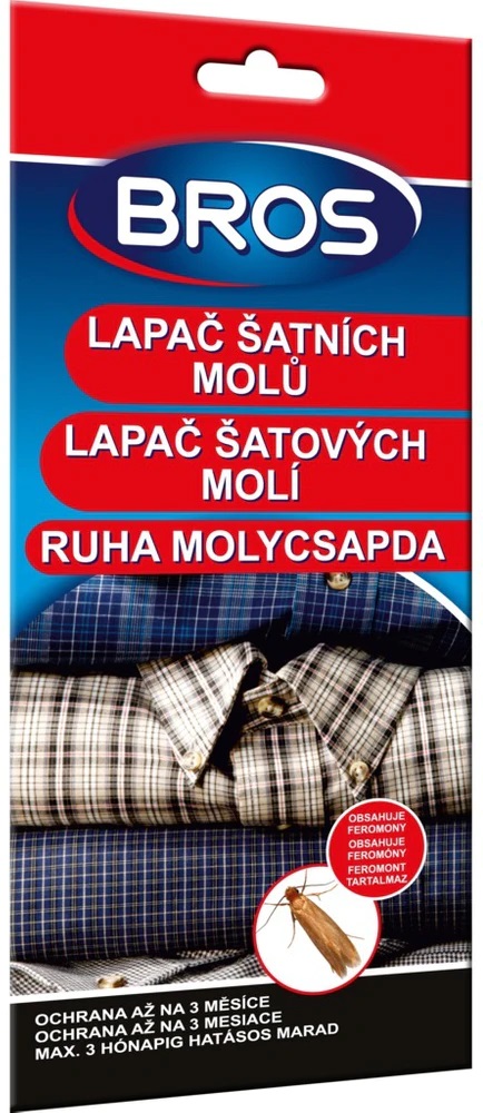 Lepiaca páska obsahuje feromón, ktorý prirodzene vábi a účinne chytá dospelé šatňové mole, a to až po dobu 3 mesiacov.