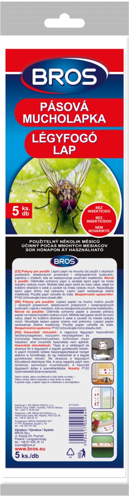 Výrobok možno zavesiť alebo stočiť do ruličky a zlepiť jeho okraje. Umiestňuje sa v miestach výskytu hmyzu. Balenie obsahuje 5 ks.